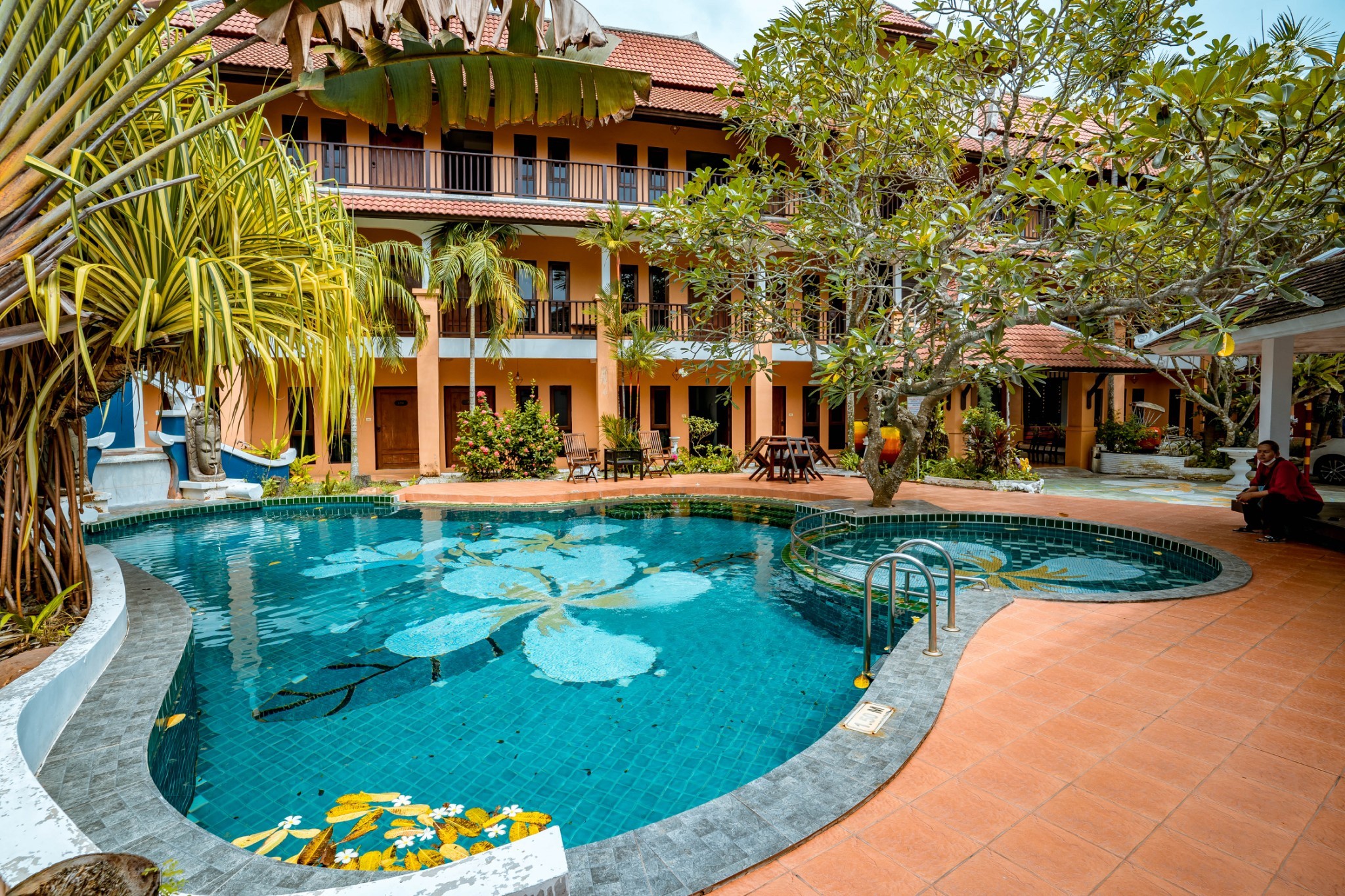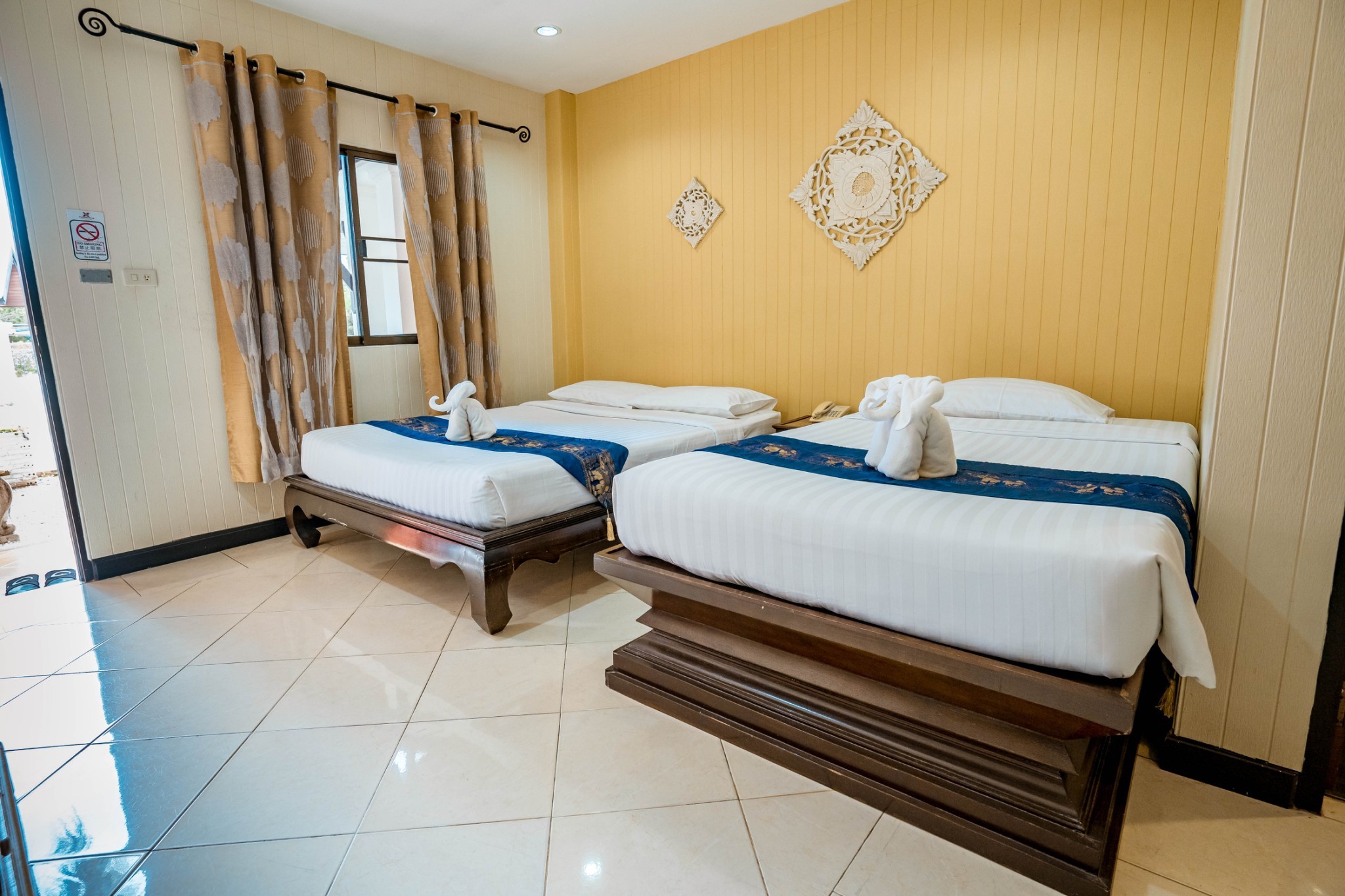 The room is decorated in a modern Thai style with warm and inviting colors, providing a relaxing atmosphere. Each room is equipped with a range of amenities to ensure a comfortable stay, including air conditioning, a flat-screen TV with cable channels, a refrigerator, and a private bathroom with a shower and complimentary toiletries.